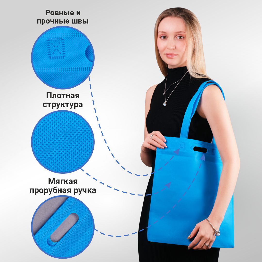 Многоразовый шоппер из нетканого материала с надежными пришивными ручками. Сумка из спанбонда приятная на ощупь, легкая и компактная.
