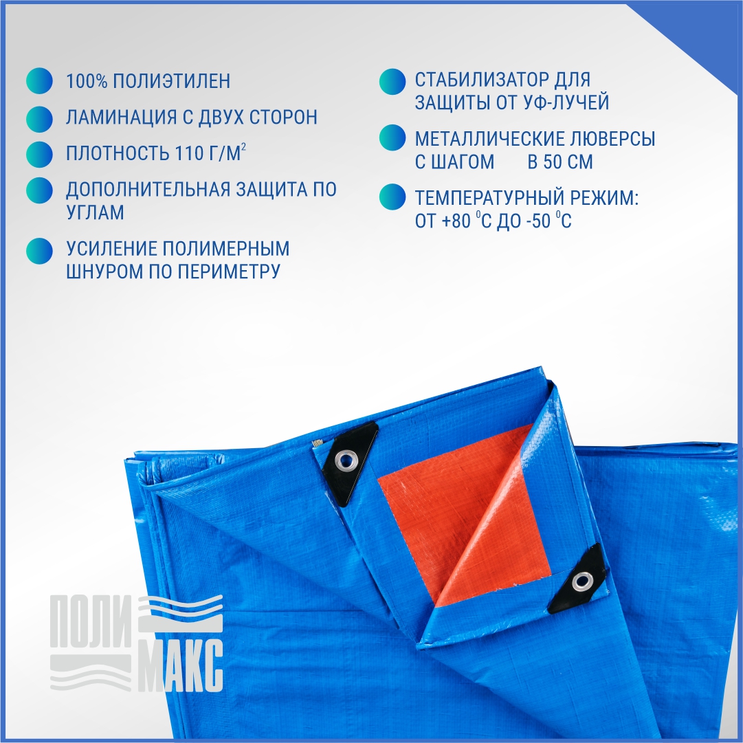 —Полог/тент полиэтиленовый 110 г/м2, 2 х 3 м, синий/оранжевый